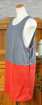 【送料無料メール便】冬用厚手生地♪裏起毛 エプロンバイカラー(スモック)<グレー×レッド>【左右ポケット/脇ボタン/背中タック/防寒/暖かい/保育士/介護士/かわいい/おしゃれ/お尻が隠れる/重ね着/チュニック】