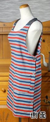 【送料無料メール便】冬用厚手生地♪裏起毛 エプロンボーダー柄 (スモック)<アイボリー・グレー・ネイビー>【左右ポケット/脇ボタン/背中タック/防寒/暖かい/保育士/介護士/かわいい/おしゃれ/お尻が隠れる/重ね着/チュニック】