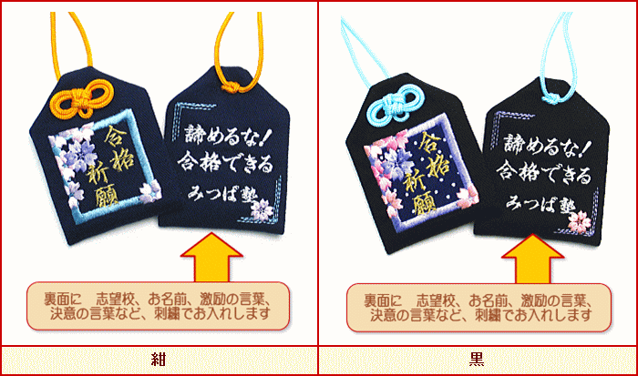 志望校、お名前、激励の言葉もオーダーメイドで刺繍するため、 世界に一つだけのお守り袋ができあがります。