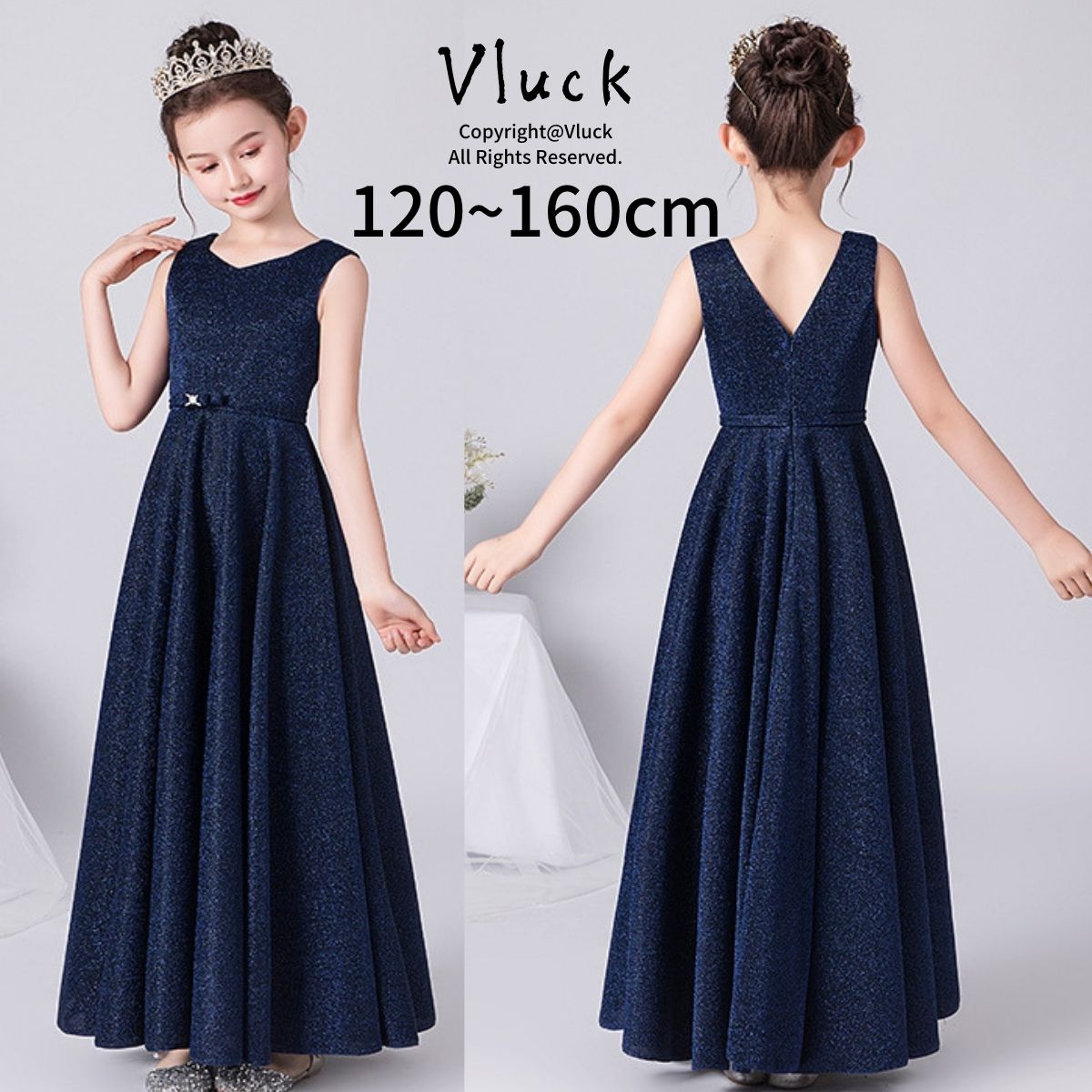 ピアノ発表会 ドレス 中学生 ワンピース ジュニアドレス 七五三 ミモレ丈 シンプル 子供ドレス ネイビー ブラック 黒 お姫様 上品 エレガント 女の子 結婚式 コンクール フォーマル 無地 大人っぽい 誕生日 パーティー シック ノースリーブ 160 袖なし 演奏会 音楽会