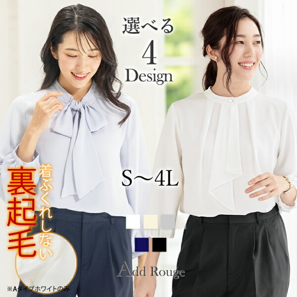 人気のボウタイデザインのほか、タックの入ったきれいめタイプや、すっきりとしたVネック、大人上品なフリル付きデザインをご用意。