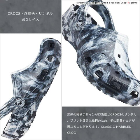 CLASSIC MARBLED CLOG◆商品名:CROCS・迷彩柄・サンダル BIGサイズ◆商品番号:C040726-01◆サイズ詳細: ※実寸値ですのでタグと異なる場合がありますM12 適応30cm 甲幅(外寸)11.9cmM13 適応31cm 甲幅(外寸)12.1cmM14 適応32cm 甲幅(外寸)12.3cmM15 適応33cm 甲幅(外寸)12.5cm◆素材:甲:合成樹脂 底:合成樹脂◆お使いのブラウザ環境等により若干のカラー誤差はご容赦ください。